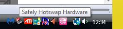 V linuxu stačí klepnout na ikonku odebrat, ve windows se někdy objeví v seznamu zařízení k odebrání, jindy ne a pak nezbývá, než počkat do vypnutí (nebo riskovat a vypnout ho natvrdo).