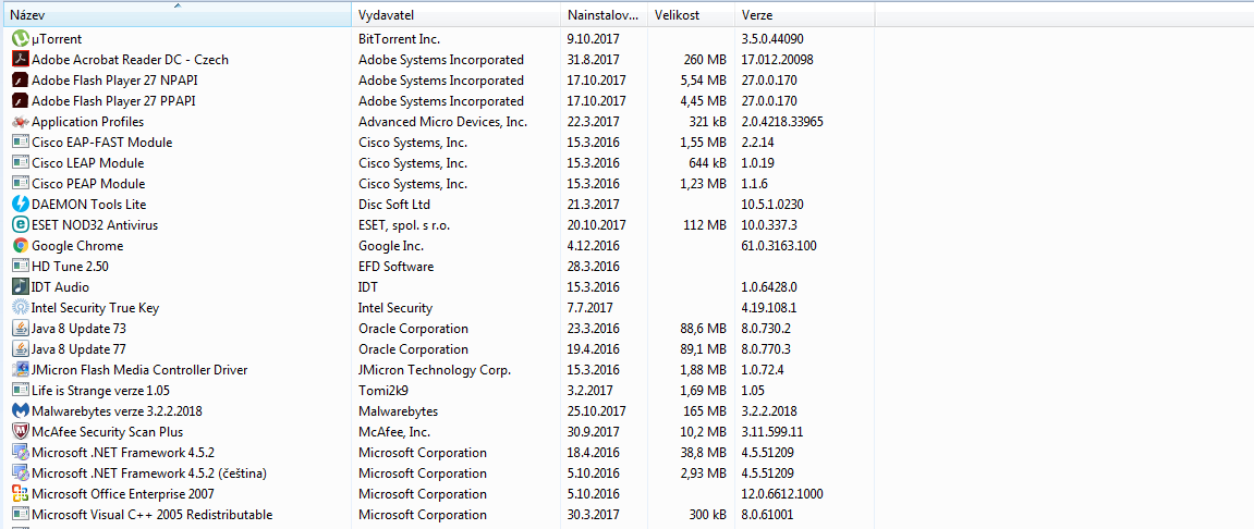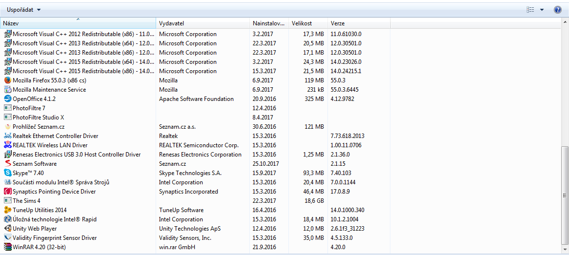 Tady jsem prinscreenla programy, co tam mám