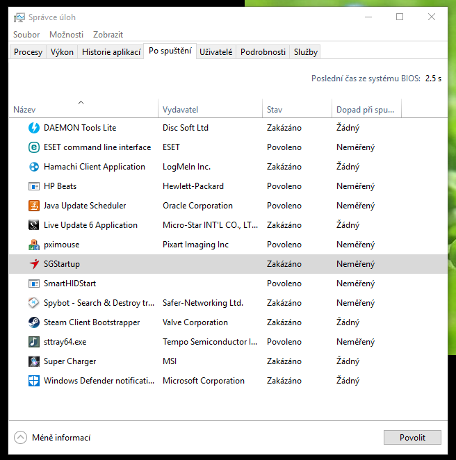 msconfig me odkazal na spravce uloh a tam prikladam foto, co mam povoleno po spusteni pc.