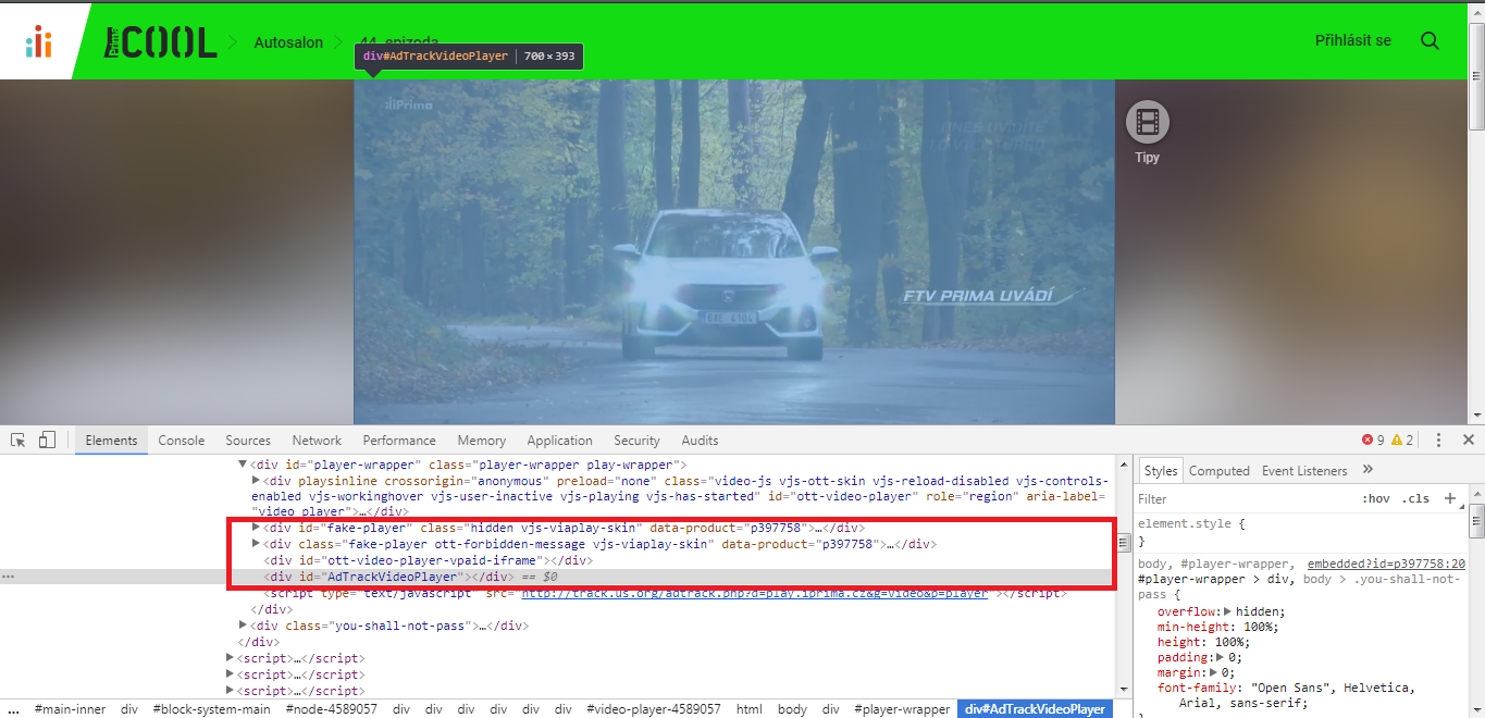 Vypnout AdBlock, nebo ve vývojářském režimu smazat tyto řádky. [80198-vystrizek-png]