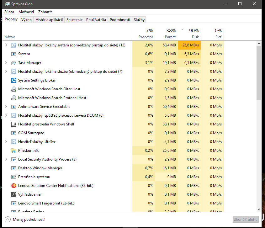 Niečo furt vyťažuje disk na 100% u Windows 10