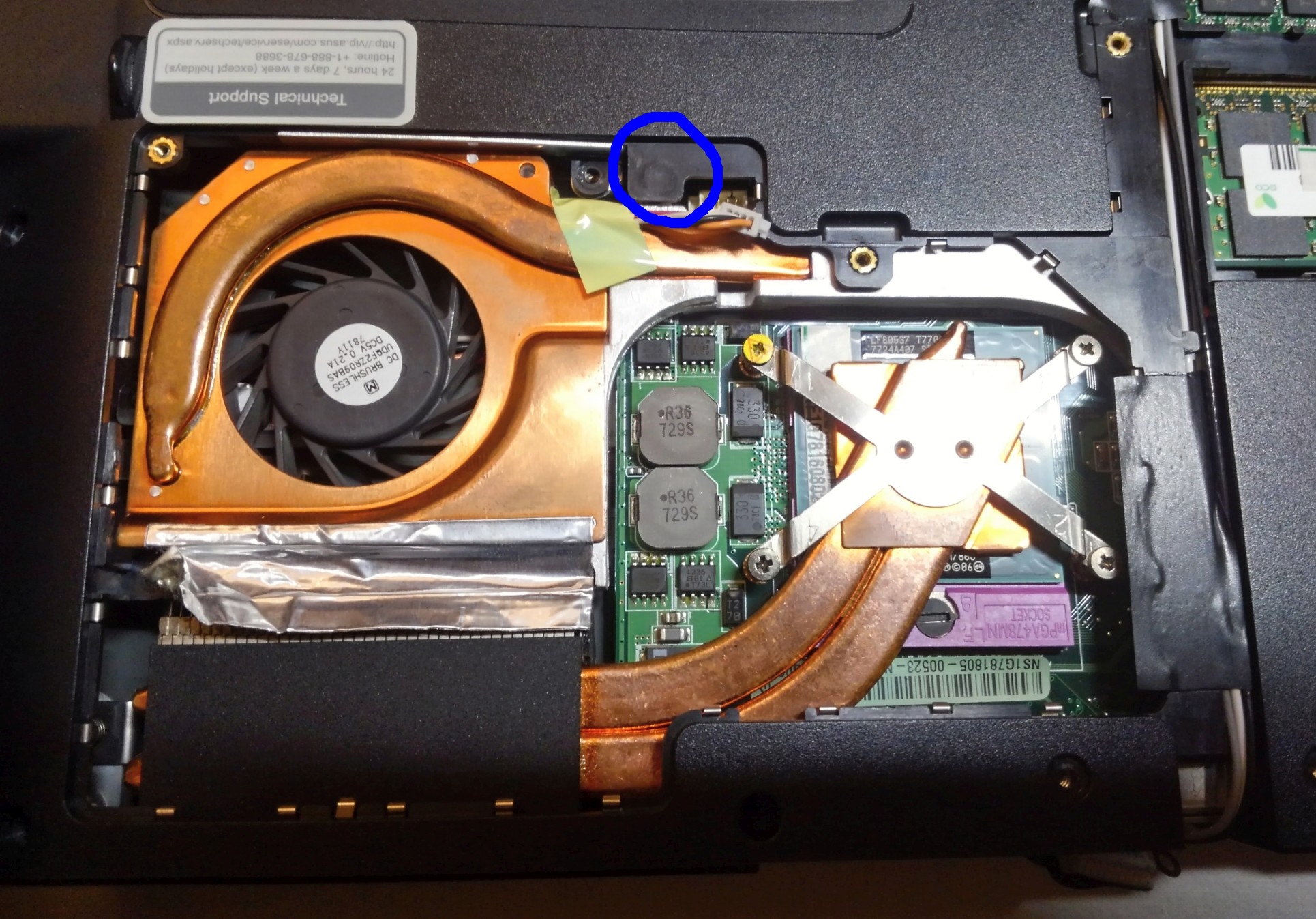 mám problém s rozebráním notebooku Asus G1S. Všechny šroubky jsem odmontoval, ale stále od sebe nemohu oddělit kryt notebooku od základní desky. Zdá se mi, že to celé drží na jednom místě u procesoru, kde je vidět jeden plastový kolík co je spojený se základní deskou, ale nevede k němu žádný šroubek. Zkoušel jsem víc zabrat, ale bez šance, navíc se bojím prasknutí. Nevíte někdo jak obě části od sebe oddělit? Jít to musí. V příloze dávám foto inkriminovaného místa.