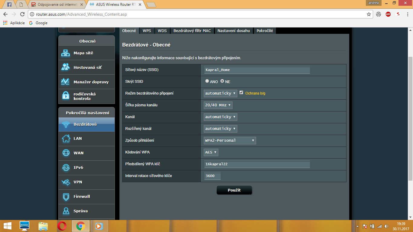 takže ještě zkontrolovat to rušení od souseda, a nastavení v routeru: ve wireless ať je vše napevno…