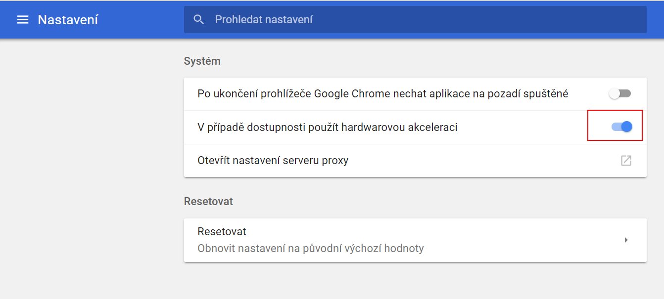 Začal bych ale zkouškou vypnutí HW akcelerace v prohlížeči. Viz. příloha.