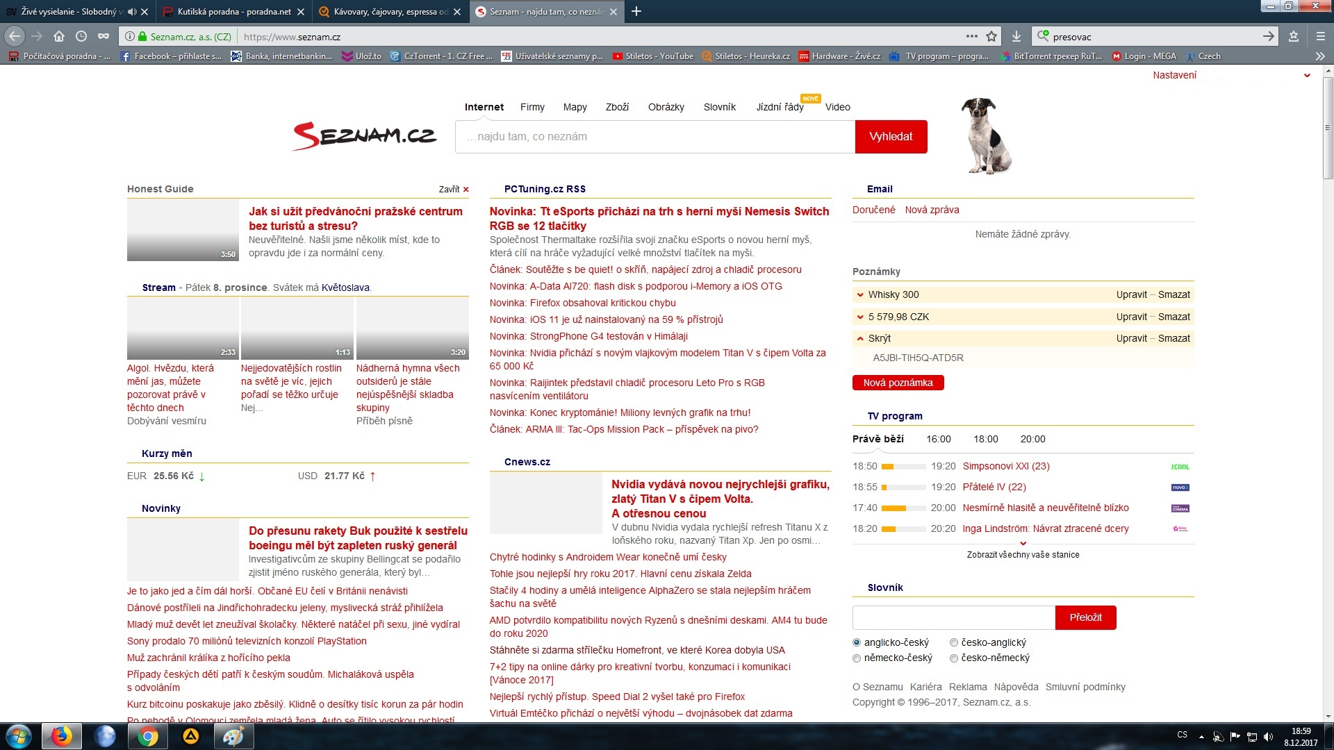 Nemám možnost jinýho připojení,no kašlu na to jestli to nepřestane změním stránku na Goolgle zprávy a meil přehodím komplet na gmail,dělá to jenom Seznam tak bude chyba tam někde nejspíš a zajímavý že to třeba půlku dne jede jak má a pak se to začne drbat nebo to nenajde stránku vůbec.Mám UPC a to zase nebudu měnit kvůli Seznamu jenom i když tu mám ještě zavedenou jinou firmu v bytě + - stejný kvality....(jinak jsem zkusil to jejich forum/podporu a úplně na hov... a zbytečnost tam psát něco)