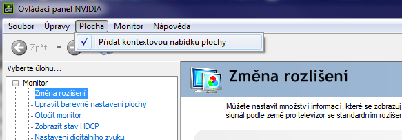 Nvidia udělala změnu, že v kontextové nabídce není, a je místo toho v liště. Stačí zapnout kontextovou nabídku a vypnout lištu a hotovo.
