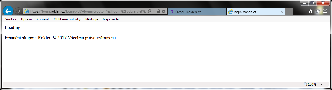 Nejprve se mi ukázalo (teď) to, cos psal v dotazu. Pak jsem povolil javascript ve stránce a načetlo se to přihlašovací okno. Takže to blokuje nejspíš něco jako NoScript a pod.