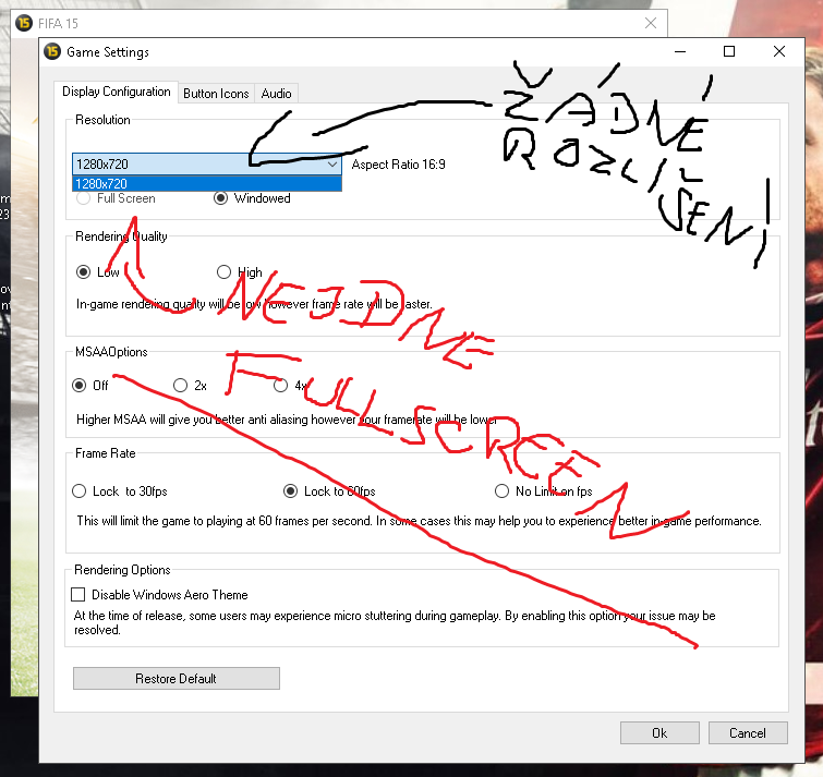 FIFA 15-nejde nastavit rozlišení a fullscreen