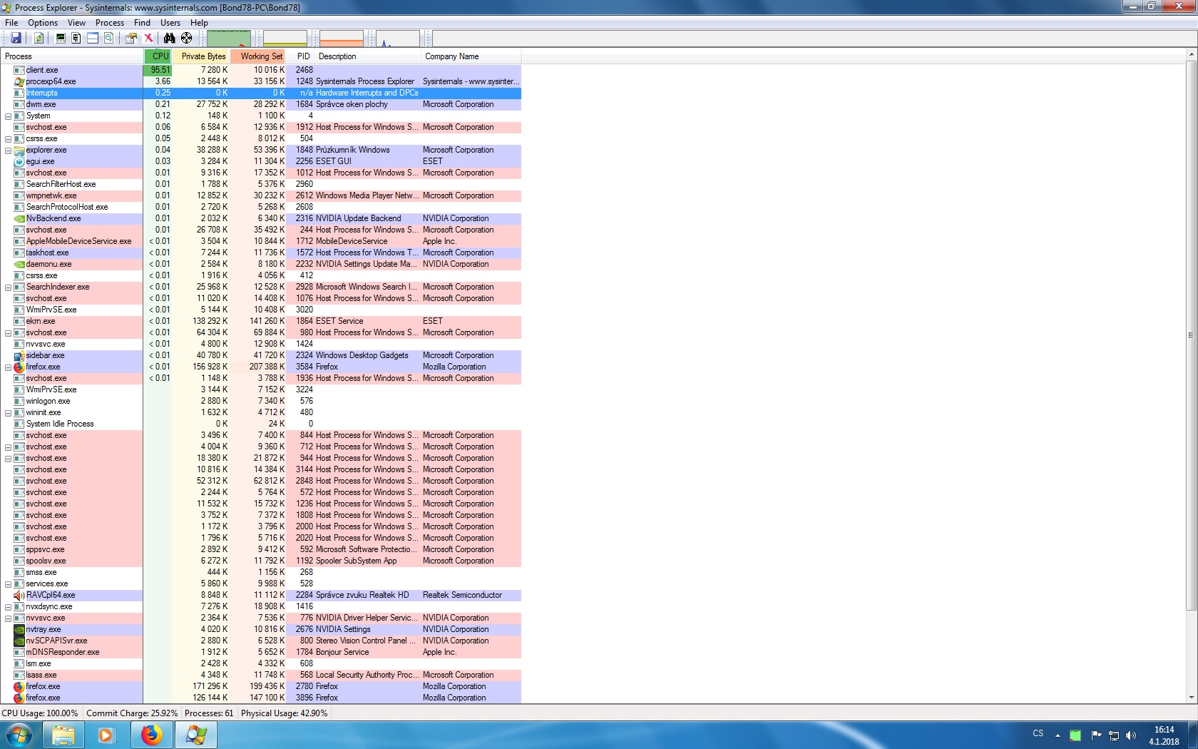 A pokud od startu celou dobu zatěžuje CPU není nic jednoduššího najít proces (někdy i jeho thread) způsobující Záťaž.