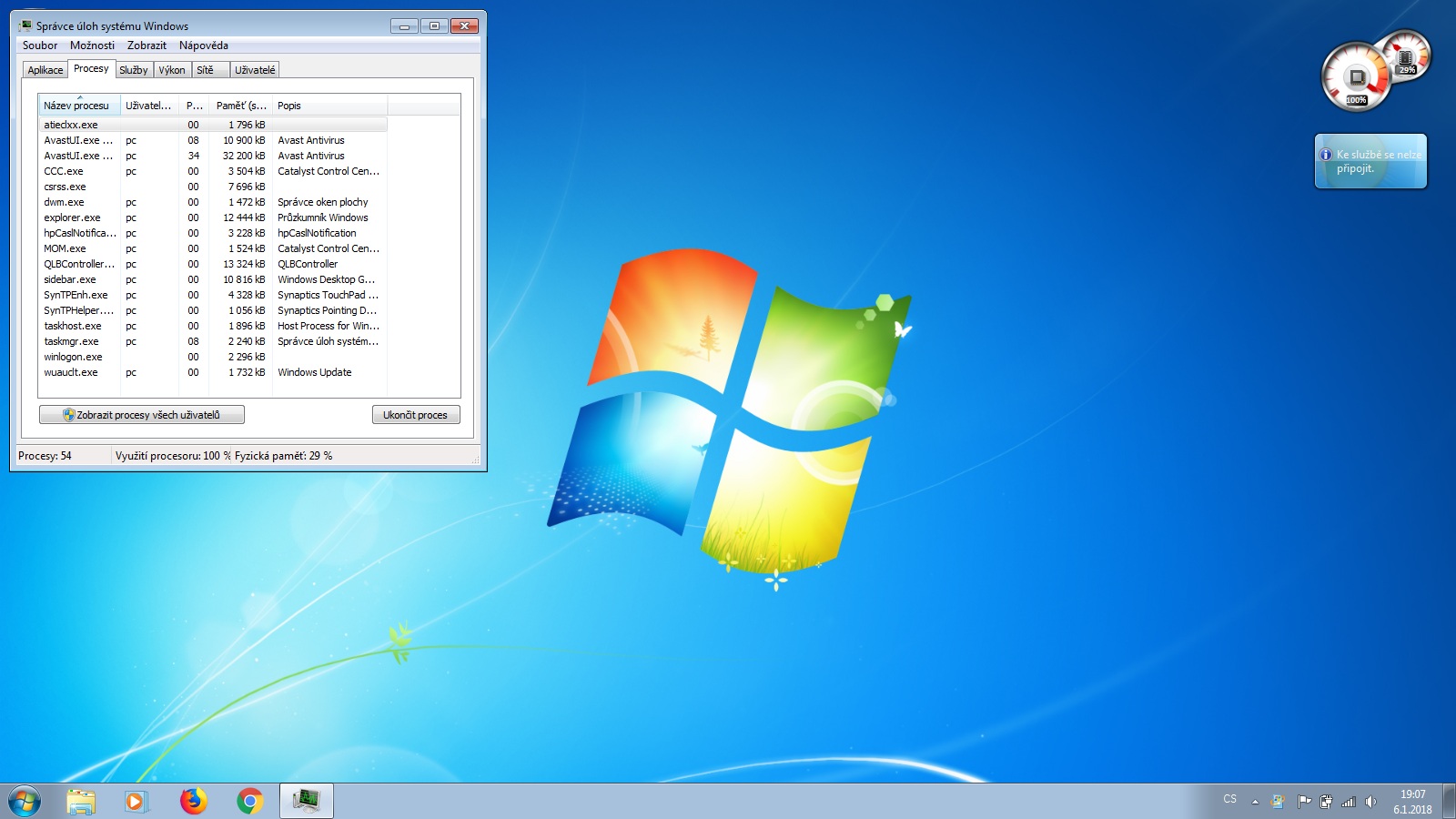 Proč to píšeš do cizího, navíc vyřešeného dotazu? Pro začátek se snad zbav toho Avastu. Třeba to tahá update, ovladače jsi snad instaloval.