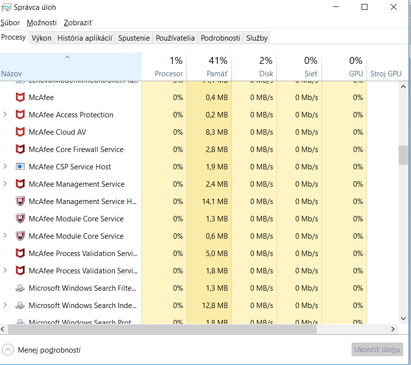 Normálně, bez aplikací třetích stran tam může být nějakých 100 procesů. Ale když se podíváš, že jen McAffee má spoustu procesů, dalších milion tam bude od předinstalovaného software, tak se nesmíš divit.