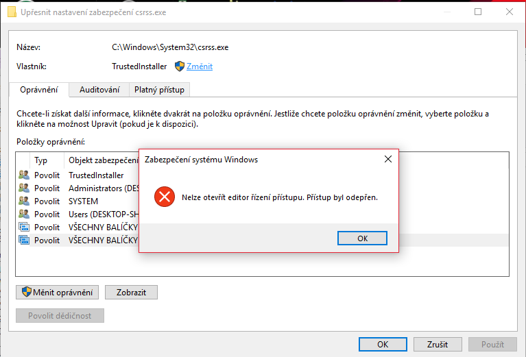 Program TrustedInstaller přebral vlastnictví a nejde změnit