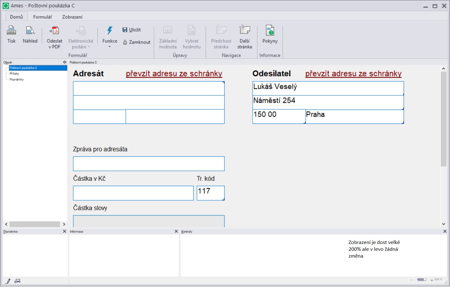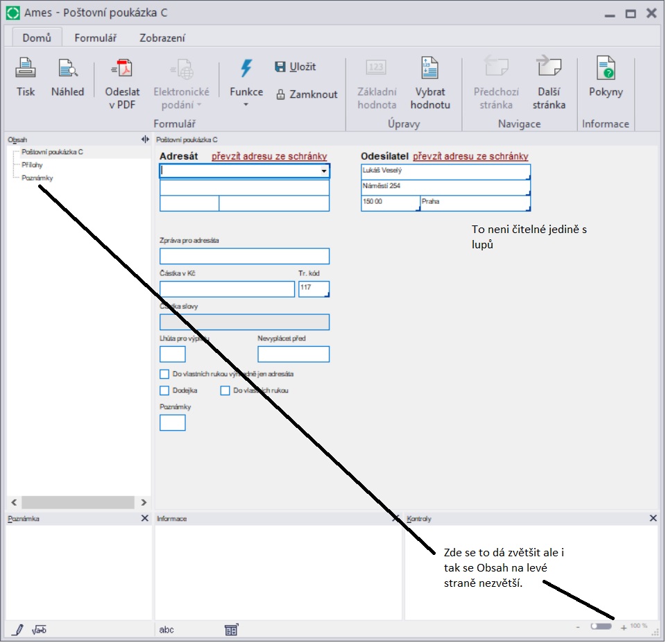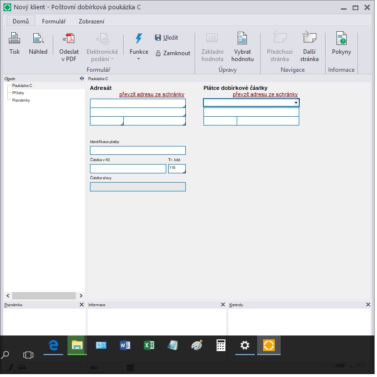 Zakoupil jsem program Form studio 2018 a zkoušel jsem vyplnit poštovní poukázku C ve Form studiu, ale