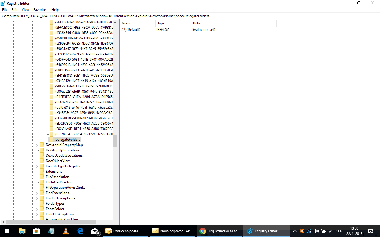 Disk som čistil s cleanerom, ktorý si mi ty Ahasver odporučil, lebo mi nabotnalo Céčko. Registre som prelustroval, nič podozrivé som tam nenašiel. Na duplicitu Déčka sa asi vykašlem, lebo je to len kozmetická vada. Keď nepomohlo vymazanie riadku z Delegates Folder, už asi nič nepomôže.