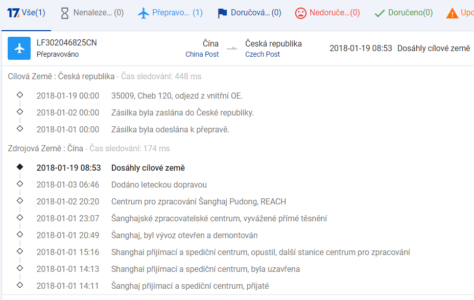 Česká pošta 201 8-01-19 08:53 Cílová země byla dosažena