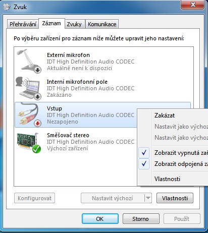 Nejde mi nastavit audio vstup dle přiloženého obr.mám pouze volbu ho zakázat.Proklikal jsem všechny možnosti,ale stále nic.Ovladače ok viz druhý obr.
