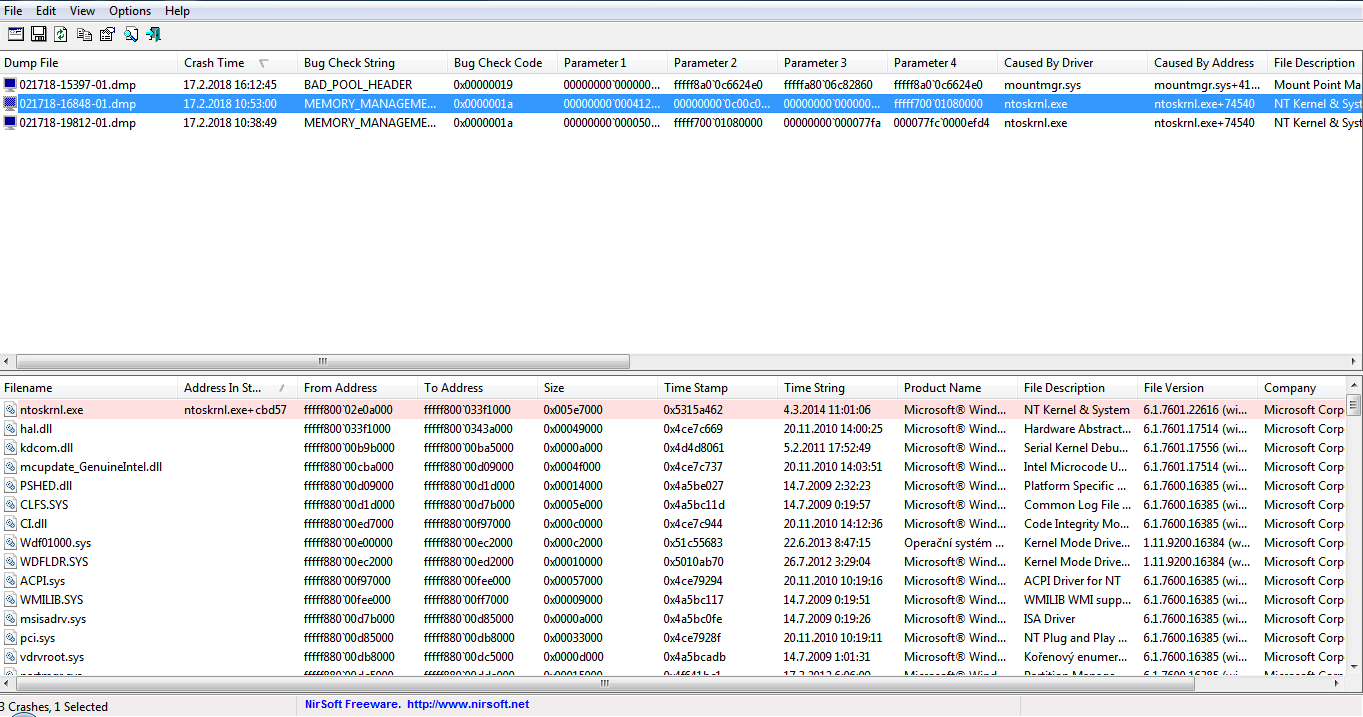 Dávám aktuální,v púvodním dotazu jsem sem již dával výpis z bluescreenviewu. bluescrview.png 74.87 KiB bluescrview2.png 76.41 KiB bluescrview3.png 75.94 KiB