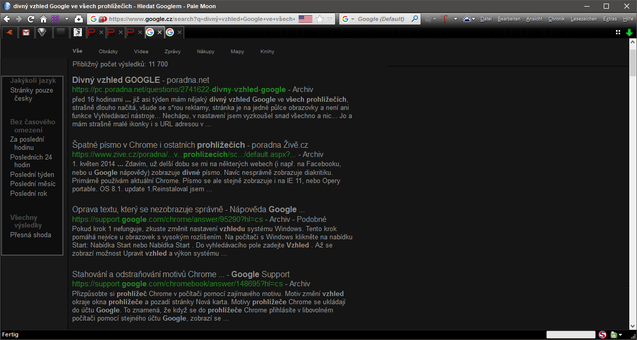již asi týden mám nějaký divný vzhled Google ve všech prohlížečích, strašně dlouho načítá, všude se s*rou reklamy, stránka je na jedné půlce obrazovky a není ani funkce Vyhledávací nástroje... Nechápu, v nastavení jsem vyzkoušel snad všechno a nic... Jo a mám strašně malé ikonky i s URL adresou v obrázcích
