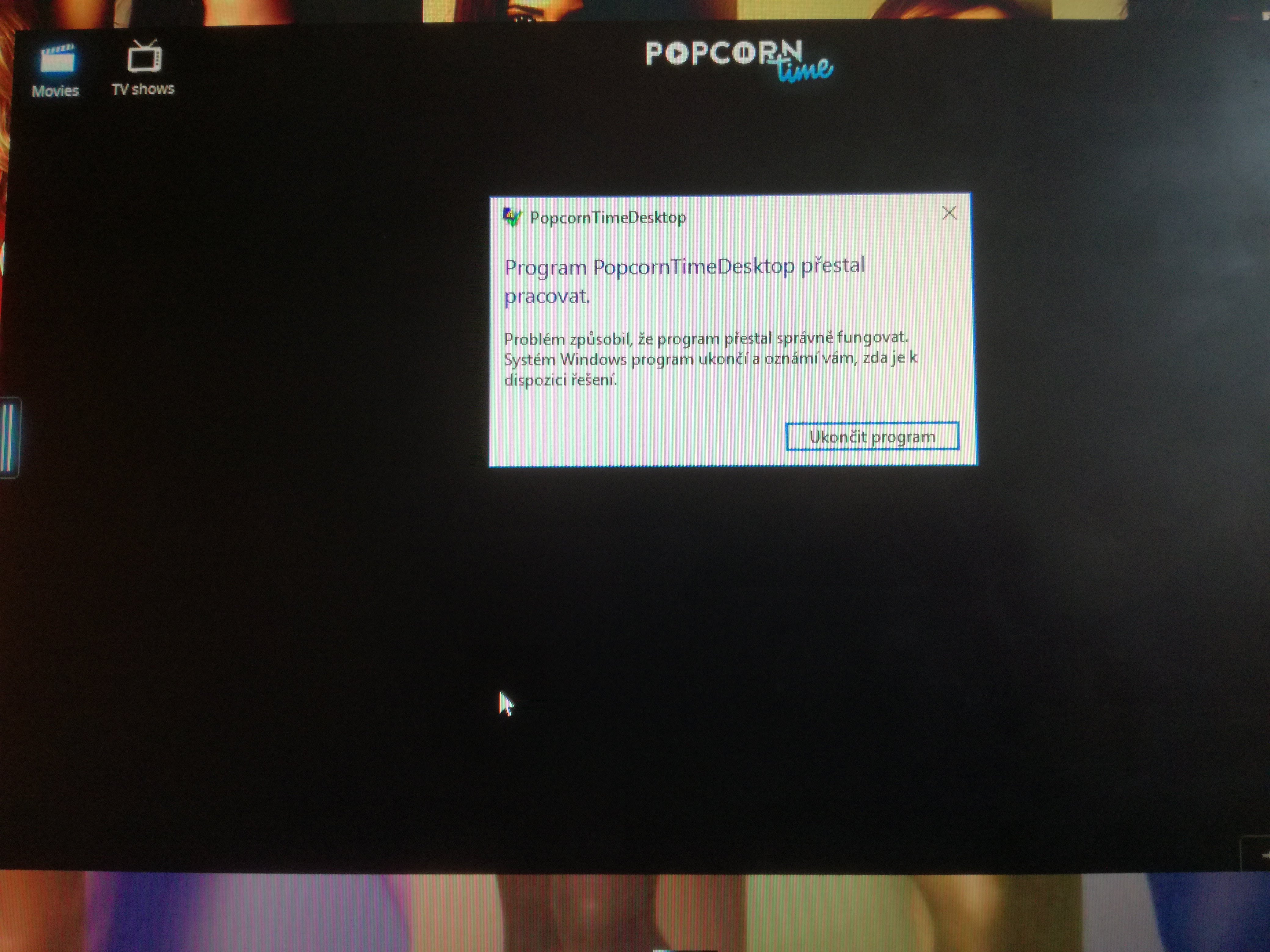 Prosím někdo mí pomoc, že jsem naistaloval PopcornTime a jsem to pustil a nic tam nejde tam napsané Program PopcornTimeDesktop přestal pracovat.