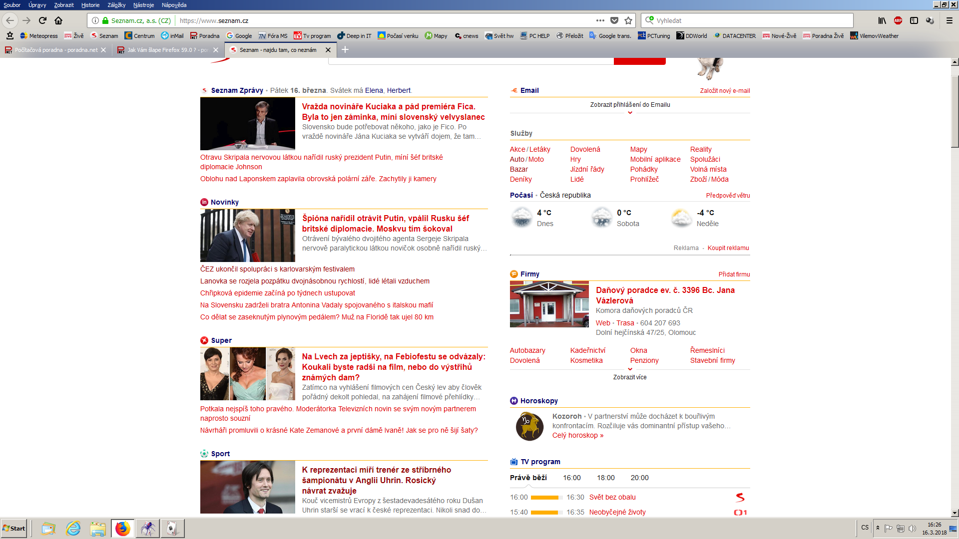 Jinak teda me napadlo, jestli nema neaktualizovane filtry Adbocku, protoze byly na Seznamu zmeny, ktere zapricini castecnou nefunkcnost jak hlavni strany, tak emailu nicmene diky novym filtrum to zase funguje OK.