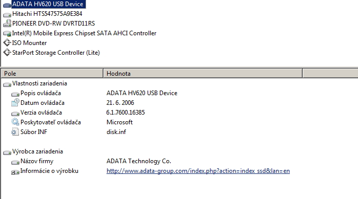 externého disku HV 620 , na ktorom mám všelijaké zálohy to je ovšem chyba