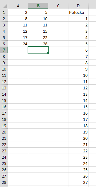 Je zarucene, ze polozky v stlpci D budu nasledovat po sebe? napr A1-B1 je 2-5, ale moze sa stat ze v stlpci D budu polozky napr 1,2,3,5,7 ? Teda vynechana polozka 4 , aj ked je v rozsahu a1:B1 ?