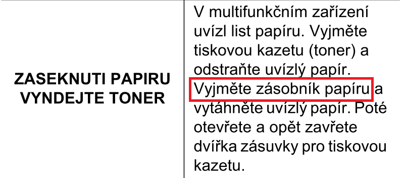 Zdravim mam otazecku, nevim jestli me tu nekdo poradi ohledne tiskarny. Tiskarna me hlasi kdyz spustim tisk- VYNDEJTE TONER, ZASEKNUTI PAPIRU. Toner mam uplne novy a papir to ani nechce natahnout, tiskarna se na chvily rozjede a potom to vyhodi tuto chybu. Tiskarna je uplne cista nikde nic zaseknuteho neni tak nevim kde by mohl byt kamen urazu. Poradi nekdo prosim, predem dekuji za tipy.