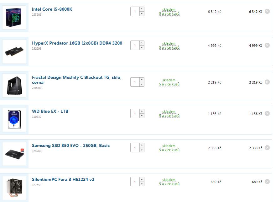 Dobrý den, dnes jsem se od techniků ze servisu dozvěděl, že v mém stařičkém počítači definitivně odešla základní deska. Koupě náhradní by vyšla dráž než koupě moderní pro současnou generaci procesorů. Po konzultaci s technikem, mi je jasné že nechci investovat balík do starého železa a že v tuto chvílí je lepší přemýšlet o něčem novém(jedná se o herní PC). Chtěl bych poprosit, zda by jste mohli prohlédnout přiložený seznam, jestli by něco takového mohlo být, a navrhli který zdroj a základní deska by byla vhodná - operační systém bude W10 Home. A ted ke grafice - myslíte že má cenu investovat do současné generace gpu nebo počkat na vydání nové? Šuškanda je že by to mohlo být někdy tento rok že? V případě že bych čekal mohl bych použít ze starého PC GTX 750ti(pokud/jestli by pasovala?), vím že by ta grafika držela celý PC zpátky ale čekání by mi až tak moc nevadilo. Stejně většinou hraji moby a na to 750 stačila + díky starému PC jsem zvyklý kupovat si většinu nových her na konzoli. Předem děkuji za Vaše názory.