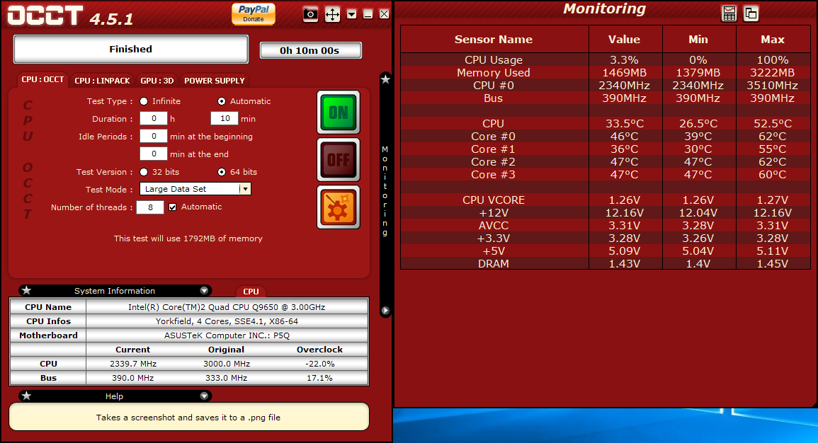 3,3Ghz, ale v OCCT u infa o CPU hned v tom hlavním okně, v kolonce přetaktování skáčou hodnoty do zá…