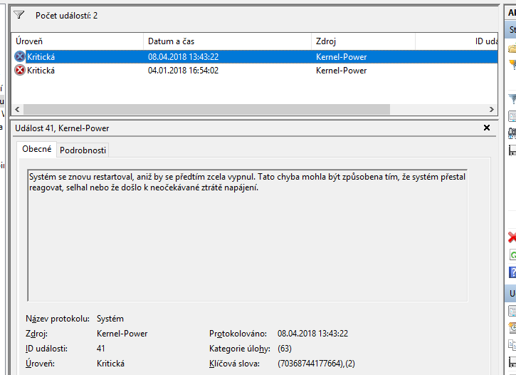 - Kernel 41 zpravidla znamena jen ze PC bylo nahle vypnuto, ukonceno. Jak jsi dosel na tu kaskadu ?