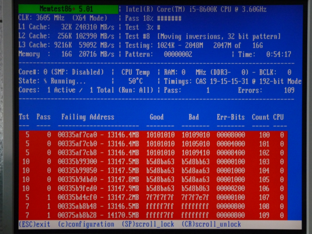 Nicméně, dělám teď testy RAM (MemTest86+, v. 5.01) a vyhazuje to chyby.