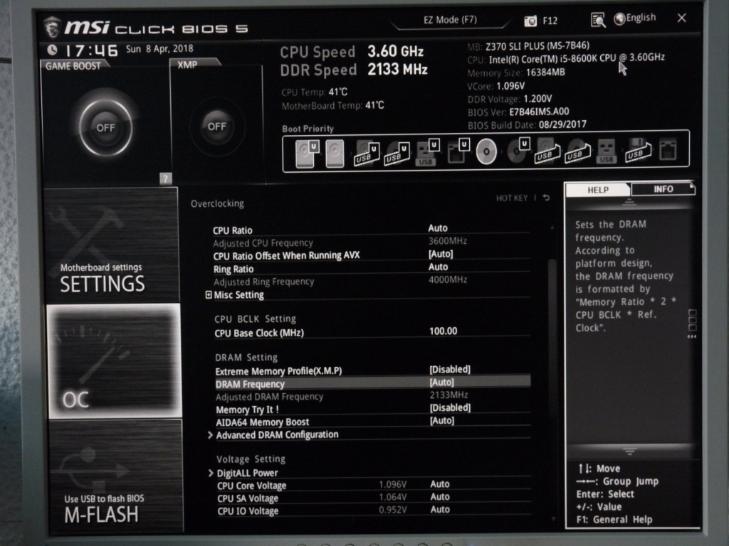 Memtest jsem přerušil, koukám do BIOSu a XMP je vypnutý a DRAM frekvence nastavena na auto (což je 2133MHz).