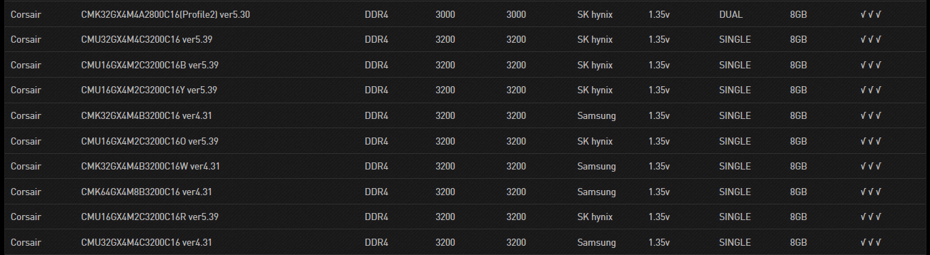 - Jedina kompatibilni RAM od Corsair na 2666 je uveden :model : CMK32GX4M2A2666C16 ver4.31, jinak na 1.2V jsou kompatibilni ramky jen na pracovni frekvenci "2400Hz" + 1.2V, je mozné, ze je zde zakopany pes ?!