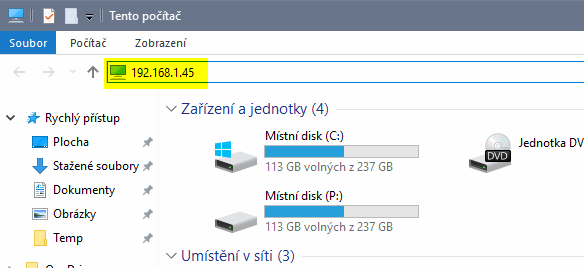 Spusť si prosím Tento počítač. V něm je nahoře adresní řádek, kde ti ukazuje, kde jsi. Do něj klikni a zadej tam IP adresu bez HTTP:// apod. Jen tu samotnou adresu.
