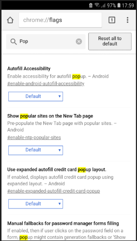 [TiP] ~ Pro hlubsi nastaveni prohlizece ( plati jen pro Chrome ) muzes pouzit "Experiens", pro otevreni nastevni|upresneni jen v prohlizeci napises do adresy "chrome://flags/" a trochu to projit. * Pro zjednoduseni, muzes do vyhledavani napsat "Pop up" nebo jiné pozadované klicové slovo :