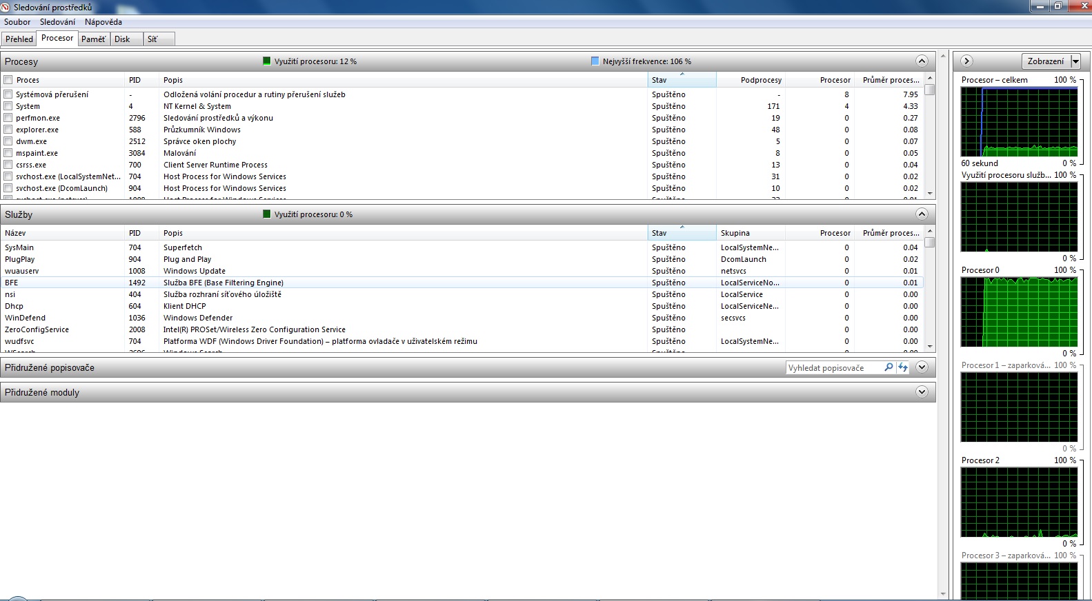 Včera jsem si všiml že mi jede jedno jádro procesoru na 100% a to i když nemám spuštěnou žádnou aplikaci.Procesor i7 3615QM.ntb Samsung 700Z7C