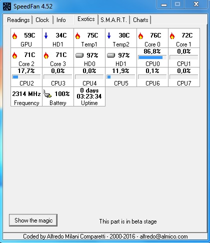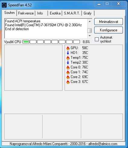No a až se budeš mrkat na teploty, mrkni i na ten Proces Explorer, jak píšu výše. Pořád není vyloučena možnost, že to zatěžuje přerušení vlivem nesprávných ovladačů.