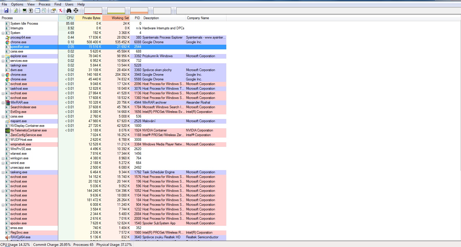 "No a až se budeš mrkat na teploty, mrkni i na ten Proces Explorer, jak píšu výše. Pořád není vyloučena možnost, že to zatěžuje přerušení vlivem nesprávných ovladačů"