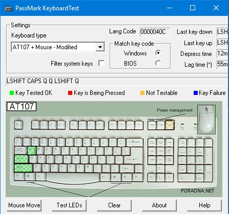 - Pouzit muzes treba SW typu : https://www.passmark.com/products/keytest.htm