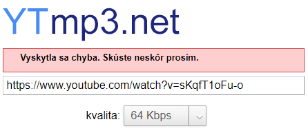 - Ten prvni z odkazu od Mlocik mi taky nefunguje, bud se zastavi na 100, nebo pise ze nastala chyba (skoda), zkus tento : https://y2mate.com