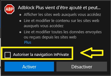 2) Po instalaci ti vyskoci okénko, zda-li ches AD-Block aktovat zadej ano. Pozor ! V tom okenku jsou dole jeste dalsi 1 nebo 2 moznosti, je i "povolit v private", zadej ANO, (klikni na to).