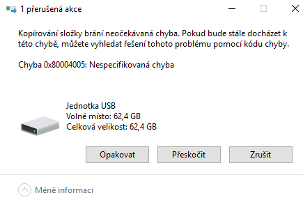 ukazuje mi to toto, když chci na flashku zapisovat. Povedlo se mi ji naformátovat a ted mi to hlásí…