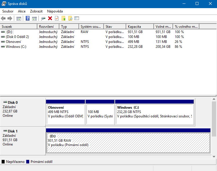 RAW, snad to vidíš. Co jsi teda zkusil? Ve druhém stroji tam taky není normální souborový systém?