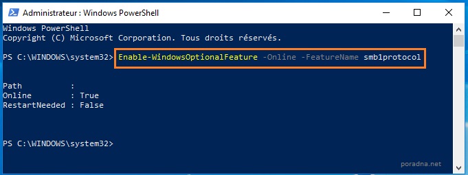Enable-WindowsOptionalFeature -Online -FeatureName smb1protocol