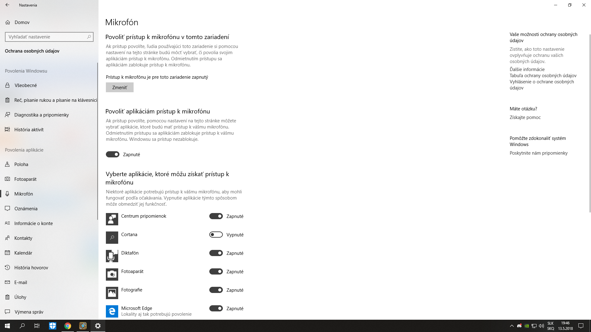 - Podivej se do "NASTAVENI" -> "SOUKROMI" -> "MIKROFON" zda-li je povoleny. Jestli né, tak ho povol. (dovolit aplikacim pouzit/pritup k mikrofonu)