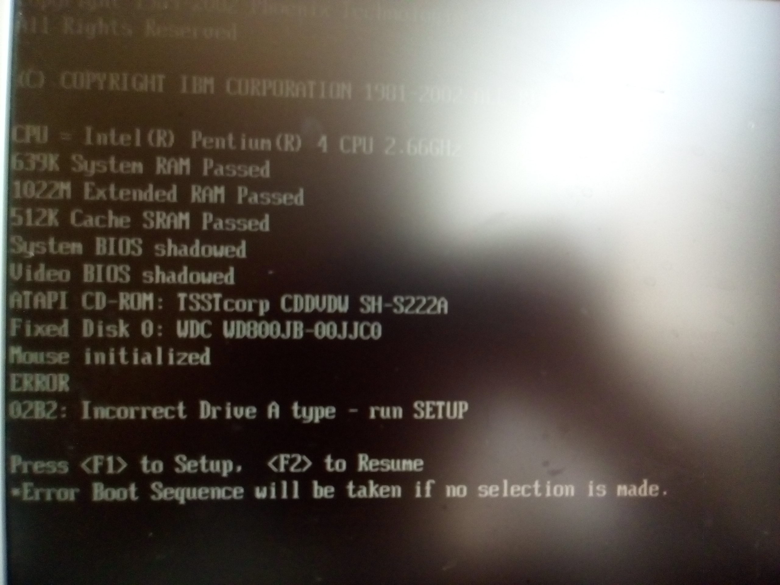 Tipuju, že se ti vybila baterka u CMOS, máš tam implicitní konfiguraci a například to chce inicializovat disketovou mechaniku, kterou předpokládám ani nemáš... Vyměň baterku a nastav správně konfiguraci v CMOS (Load defaults).