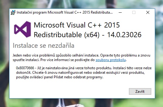 Microsoft Visual C++ 2015 - nelze nainstalovat.