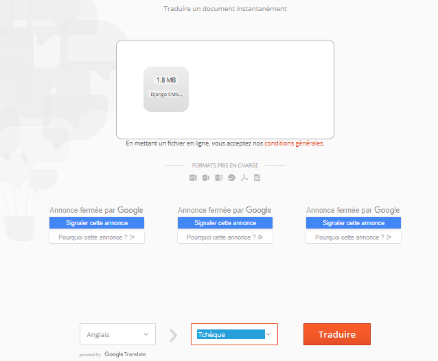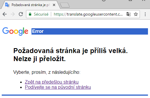 - Bohuzel v mnoha pripadech, se bud neprelozi (nebo preklad vypada jak spatne nastavené UTF), nebo kdyz je dokument trochu vetsi, prelozit nepujde a casto potkate nasledujici hlasku typu :