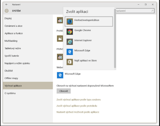* Jde jit i pres "nastaveni" -> "systém" -> "vychozi" -> "Wébovy prohlizec" : zvolit tvuj preferovany, kuprikladu Google Chrome, nebo jiny co pouzivas.