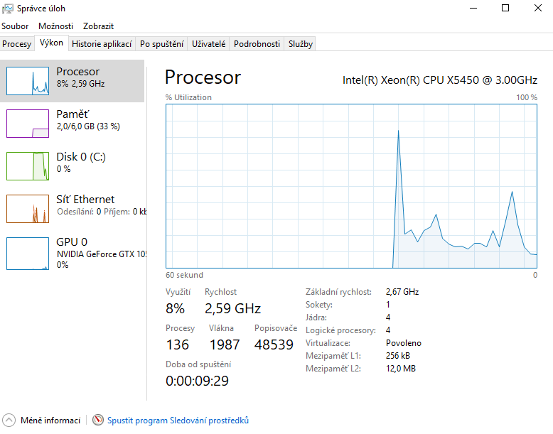 V plné zátěži musí jet na 3GHz. Sám jedu na Xeonu X5460, který jsem ještě přetaktoval na 3,6GHz. Ono to skoro vypadá, jako by byl v BIOSU snížený násobič nebo snížená frekvence FSB, proto by byl dobrý ten reset.